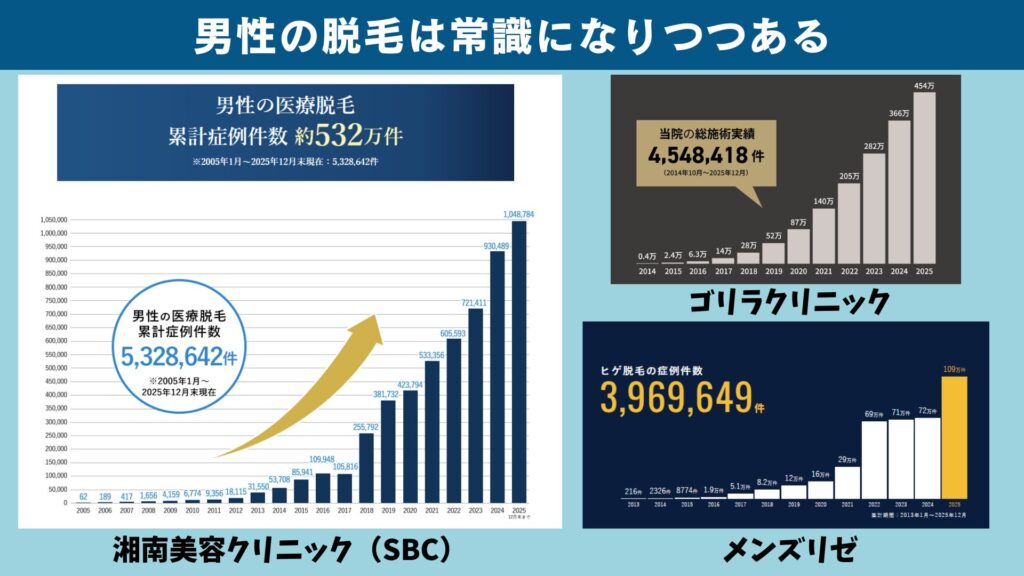 大手クリニックの施術件数も右肩上がりで、ここ数年で一気に広がっています。