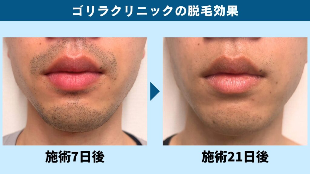 参考記事:【写真あり】ゴリラクリニックのヤグレーザー効果は?ヒゲ脱毛7回目のリアル体験談