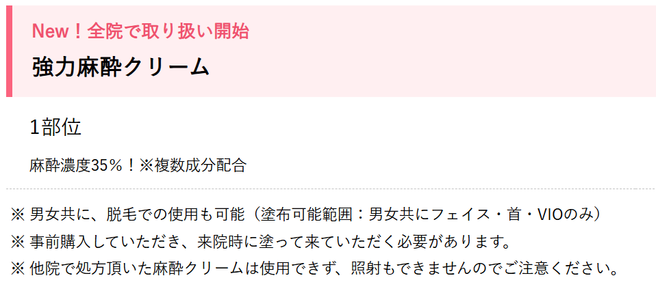 その代わり、湘南美容クリニック独自開発の麻酔クリーム「強力麻酔クリーム」が使用可能です。