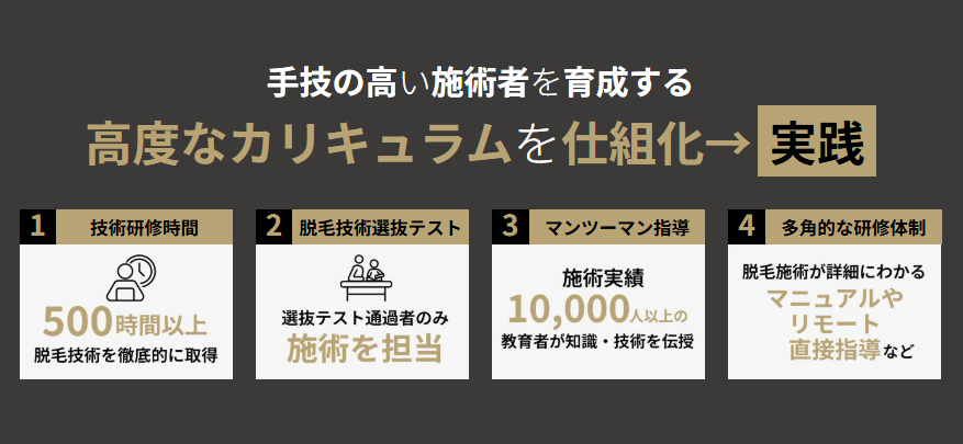 また、ゴリラクリニックでは、施術する看護師に対して、高度な教育カリキュラムを仕組み化して実践しています。