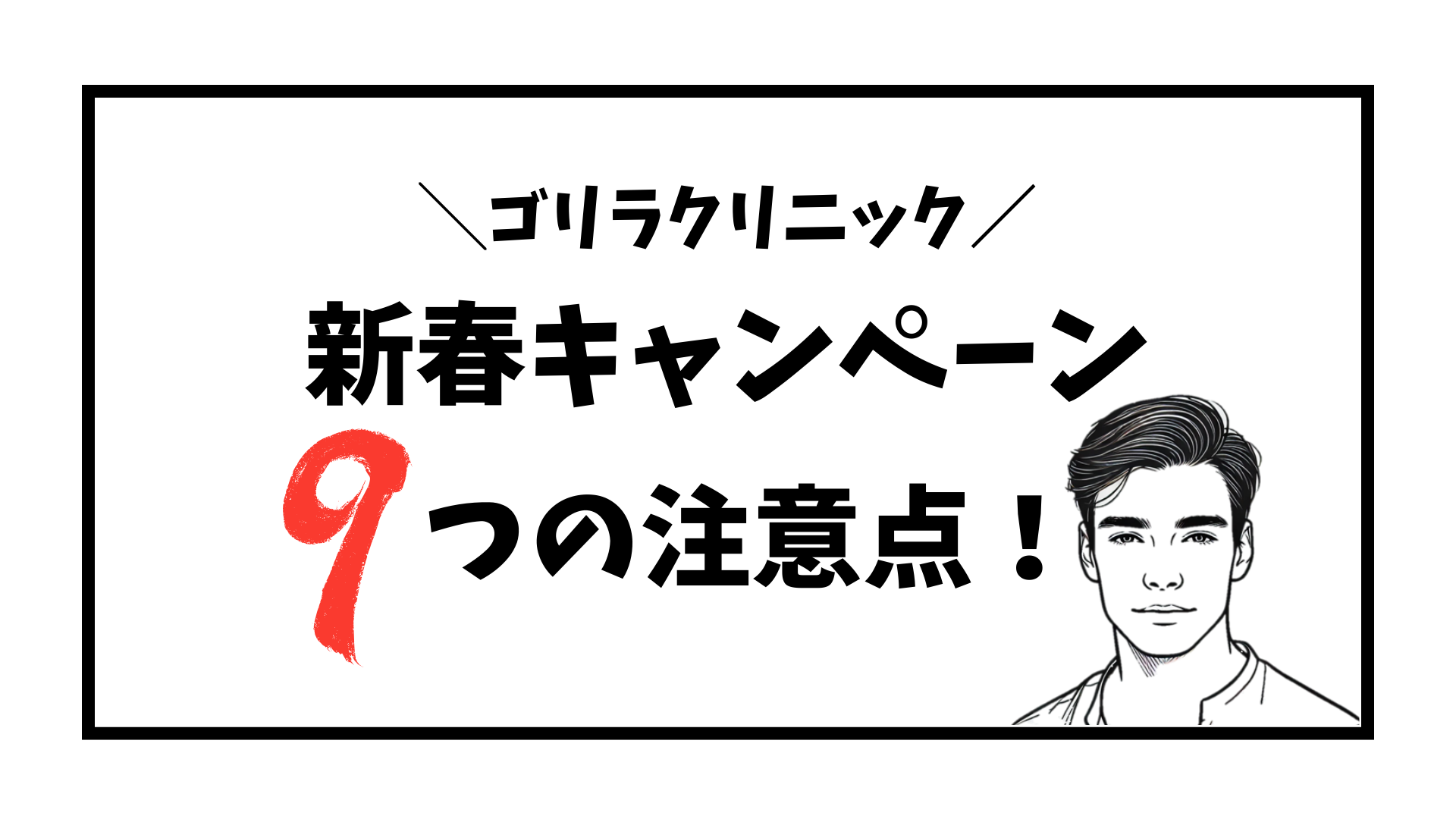 ゴリラクリニックの新春キャンペーンは非常にお得ですが、事前に条件を把握しておかないと「思っていたのと違った…」と後悔しやすい点もあります。