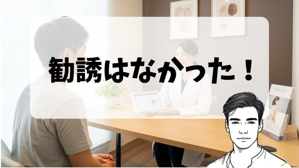 同じような記載があっても普通に勧誘してくるクリニックもあるなか、メンズリゼでは本当に勧誘はありませんでした。