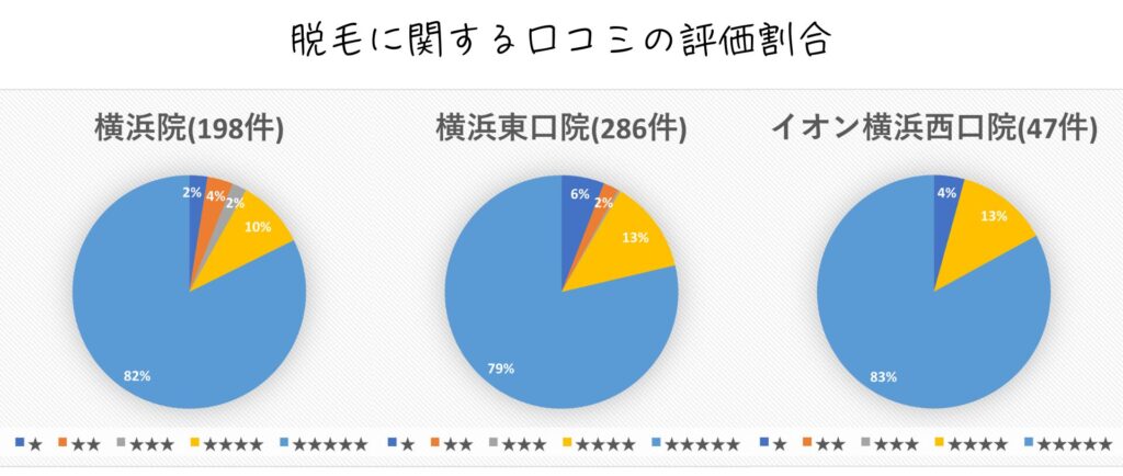 どの院も”星5”の割合が80%前後で、全ての院において総じて評価が高いと言えます。