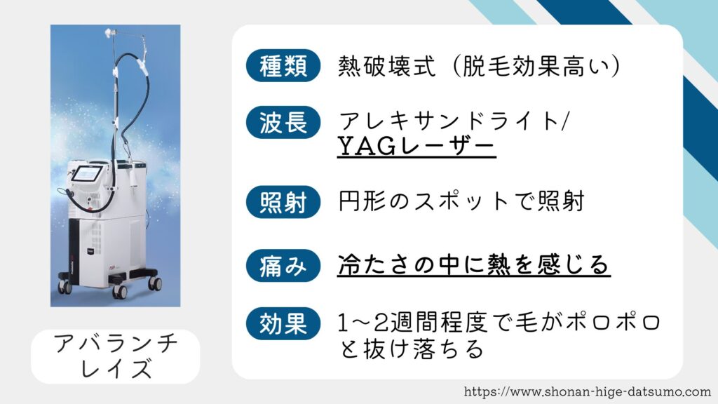 | 特徴 | メラニン吸収率が高く、脱毛初期の効果が高い | 痛みが少なく、産毛向き | 波長が長く、根深いヒゲに強い |