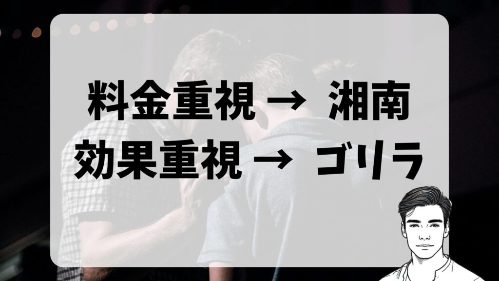 【結論】安さ・通いやすさなら湘南、効果・満足度ならゴリラ