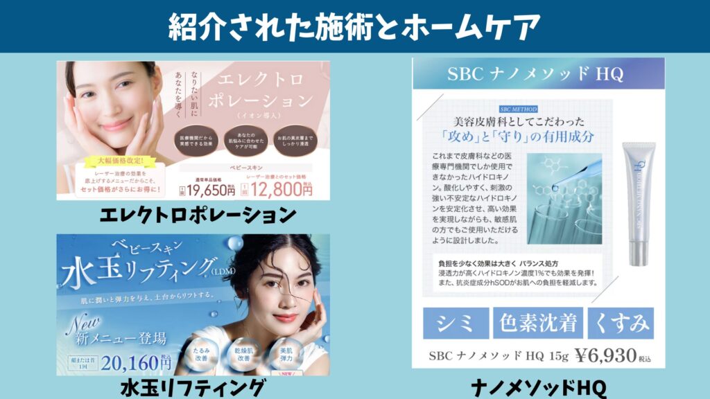 ここで追加施術や化粧品の強引な提案は一切なく、広告や公式HPで見た料金とほぼ同じ内容でした。