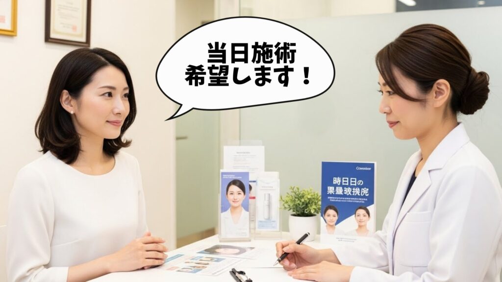 医師とレーザー機械の空き状況によっては当日施術できない可能性もあります