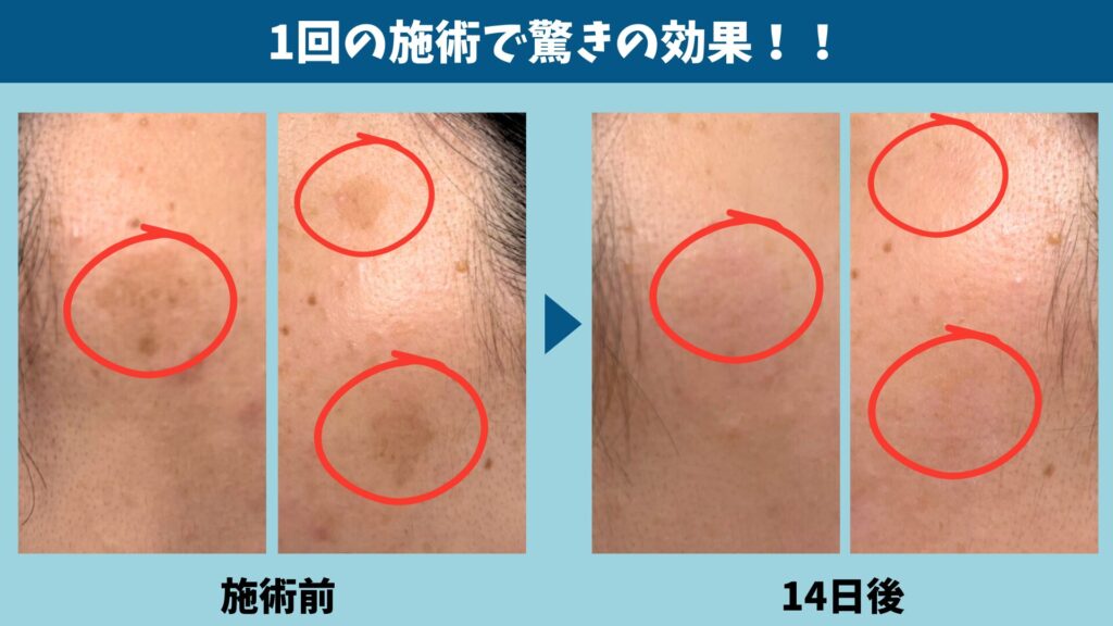 施術前後を比較するとシミが薄くなっているのが分かります。